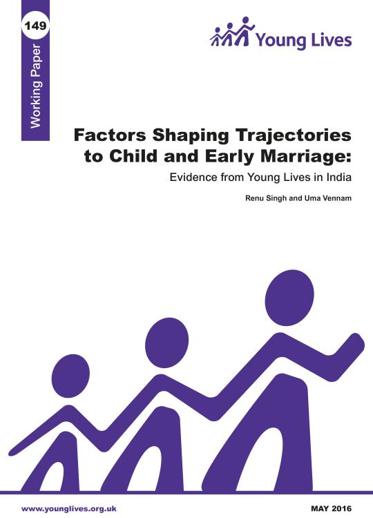 The 2011 Census in India reported that nearly 17 million children between the ages of 10 and 19 –6% of the age group – are married, with girls constituting the majority (76 per cent), although there has been a significant relative reduction in the marriage of girls under 14. The aim of this paper is to better understand the individual, household and community factors that explain the different pathways to marriage among Young Lives children, drawing upon both descriptive statistics from the household survey as well as in-depth qualitative research with the study children.