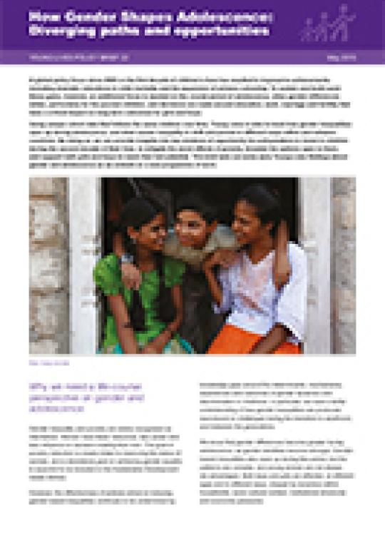 A global policy focus since 2000 on the first decade of children's lives has resulted in impressive achievements, including dramatic reductions in child mortality and the expansion of primary schooling. To uphold and build upon these gains, however, a new focus is needed on the crucial period of adolescence, when gender differences widen, particularly for the poorest children, and decisions are made around education, work, marriage and fertility that have a critical impact on long-term outcomes for girls and boys.