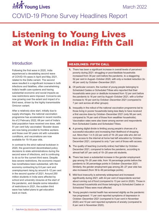 This brief report provides headline findings from the fifth call in Young Lives at Work's COVID-19 Phone Survey in India.